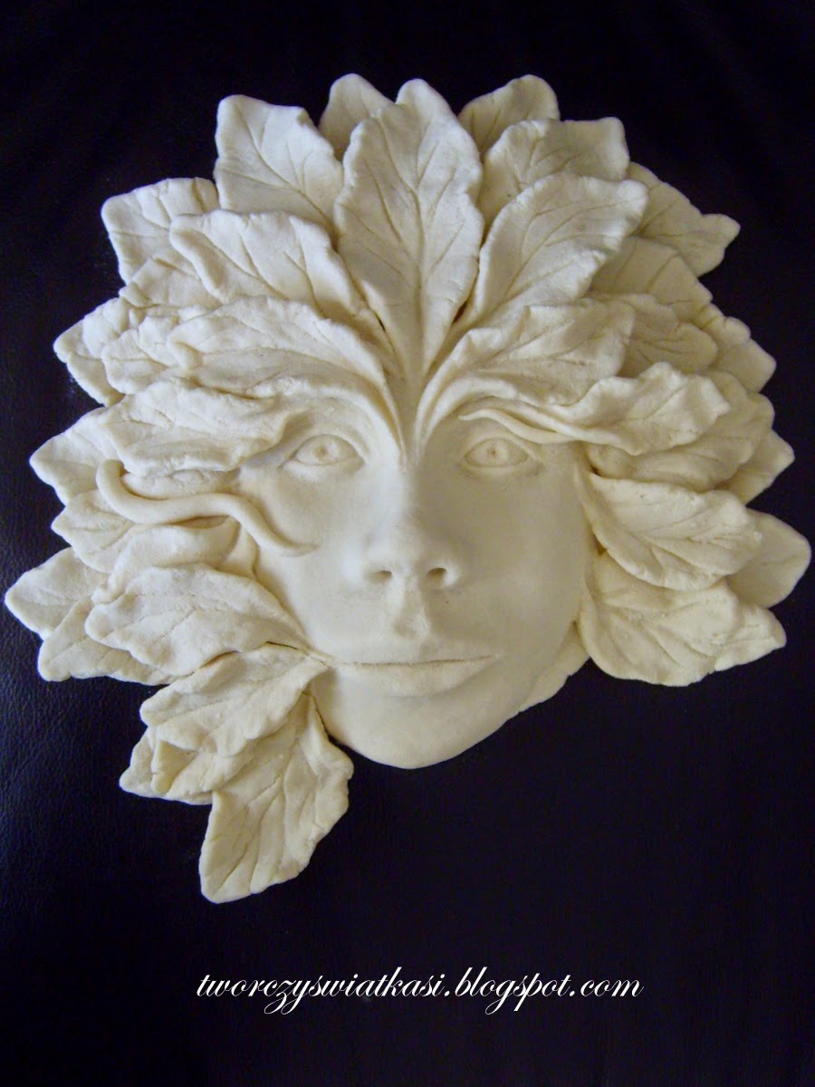Coś z masy solnej, co miało przypominać ducha lasu...i wyszło jak wyszło i poszło do kubła nieskończone, czego żałuję. Pomysł podsunęła mi Anula . ( Aniu zawiodłam na całej linii, przepraszam ! )