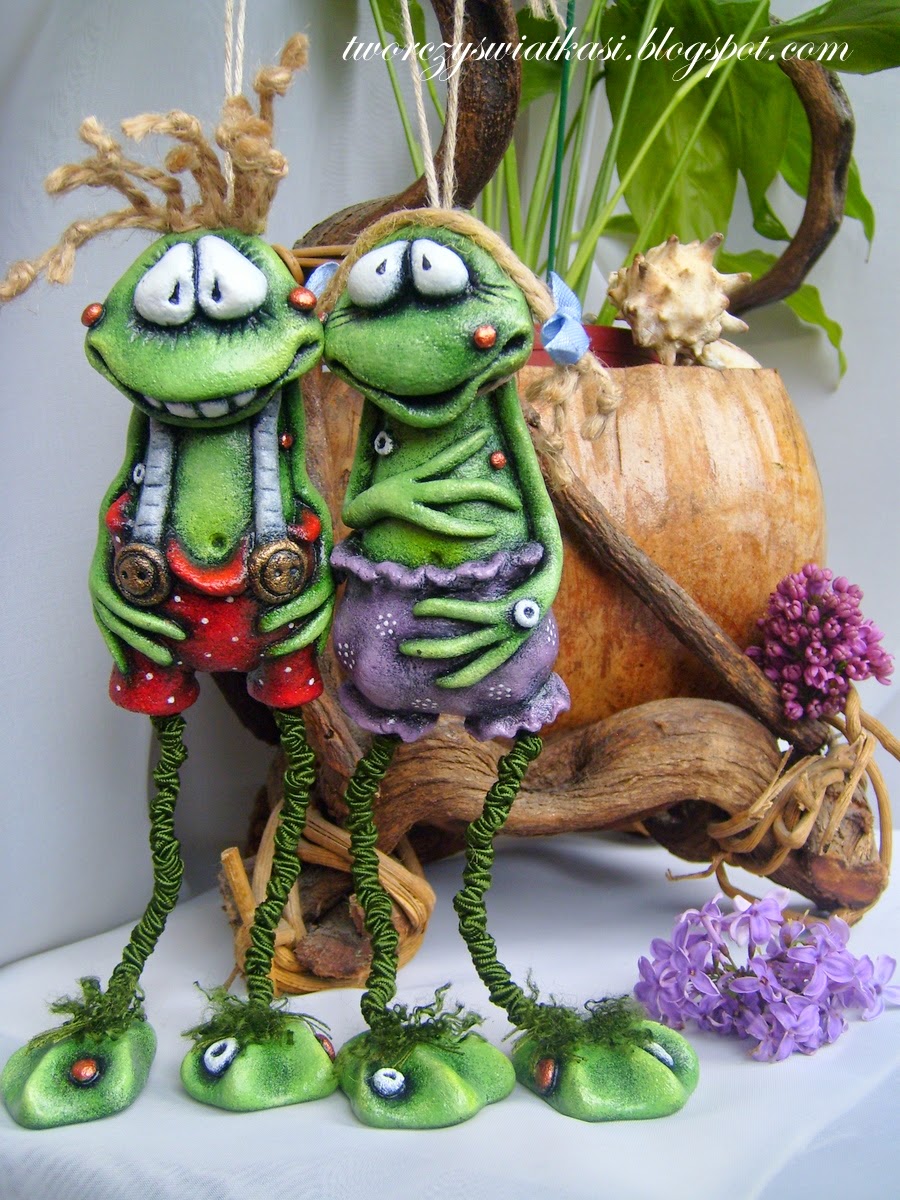 Dzisiaj dwie żabki, które udało mi się stworzyć, zanim dopadł mnie dół twórczy. Znacie takiego ?  Przychodzi  nie wiadomo skąd, nie wiadomo dlaczego i odbiera chęć i radość tworzenia. Mam nadzieję, że ten nieproszony gość szybko mnie opuści, bo nie jest mi   z nim dobrze :-/